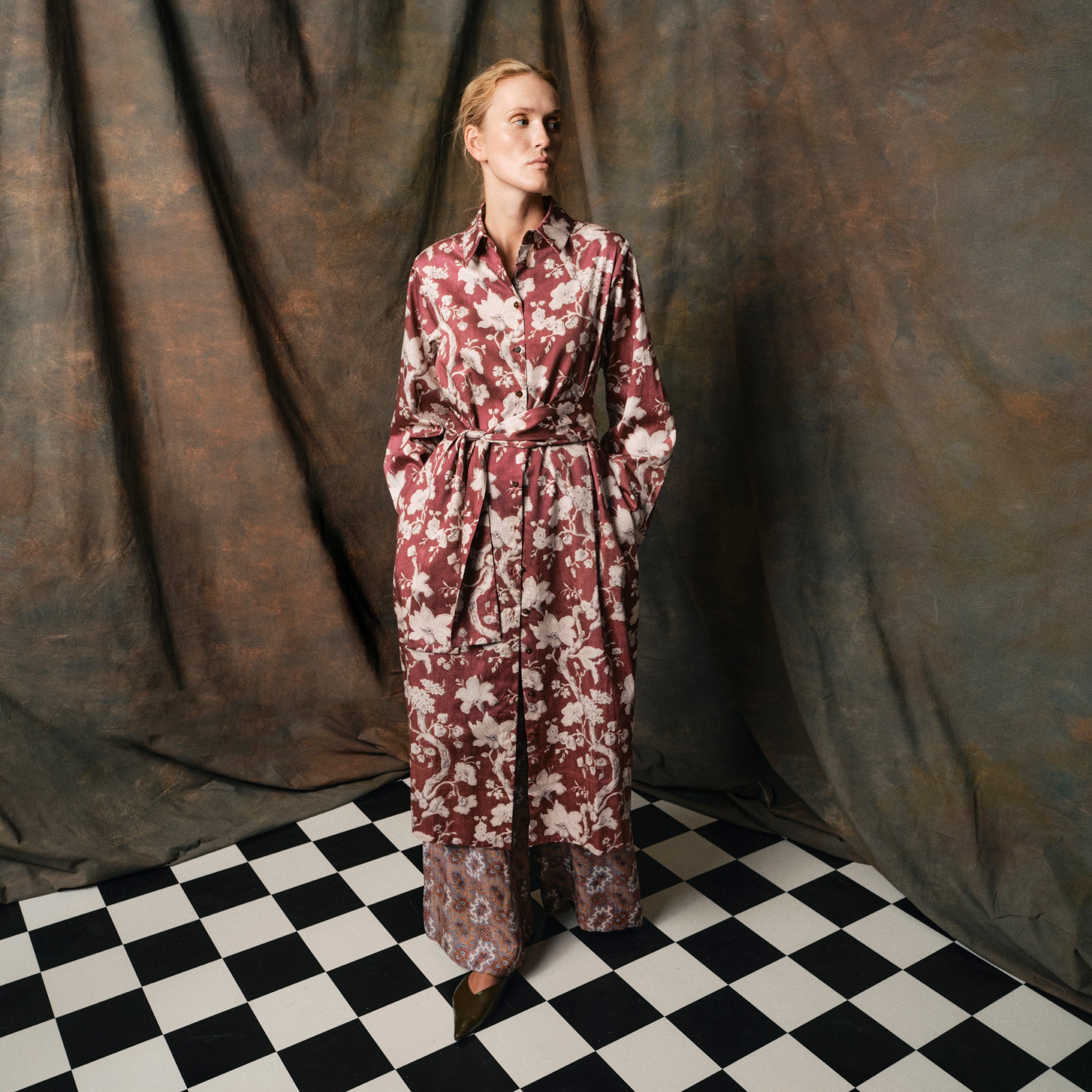 Printet på Alexandra kaftan er fransk og fra midten af 1700-tallet. Vi har det originale print i vores arkiv.